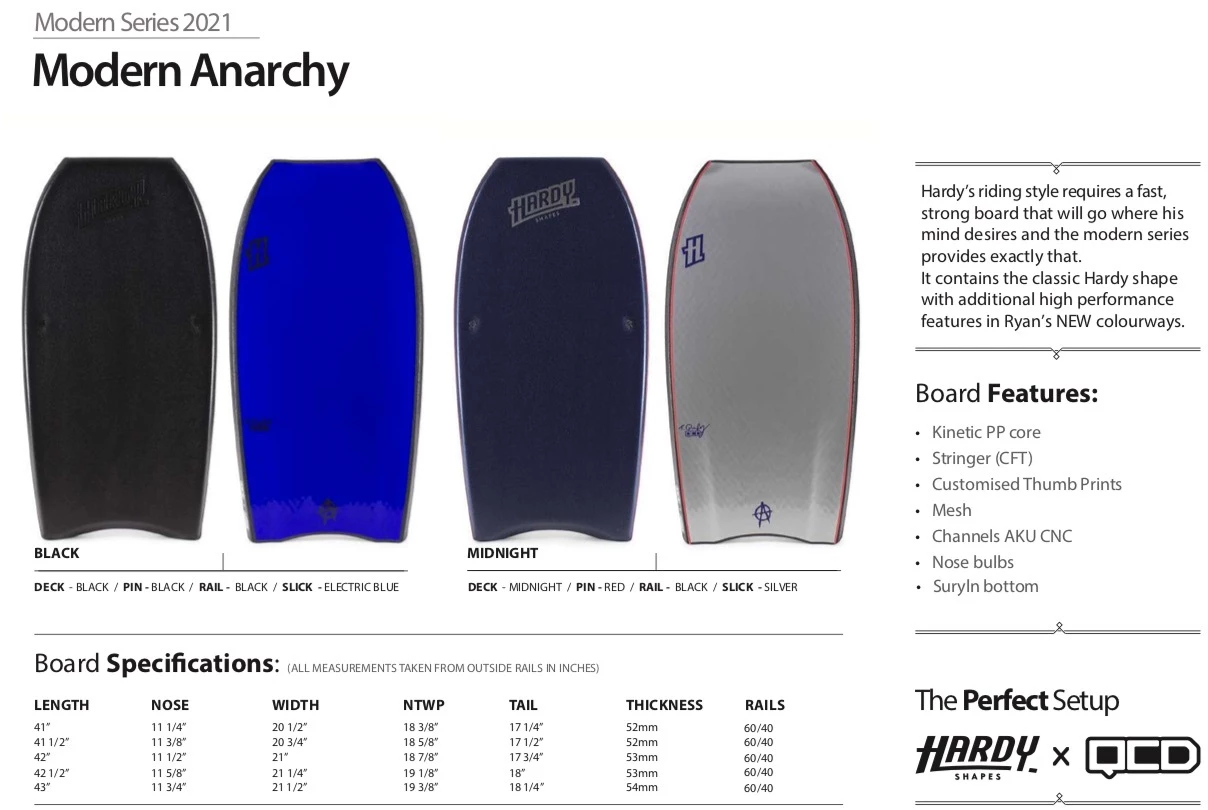HARDY SHAPES Bodyboards Modern Anarchy Polypro Core Model – 2021 Range